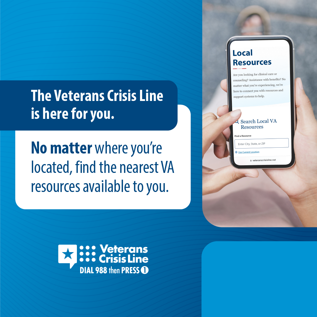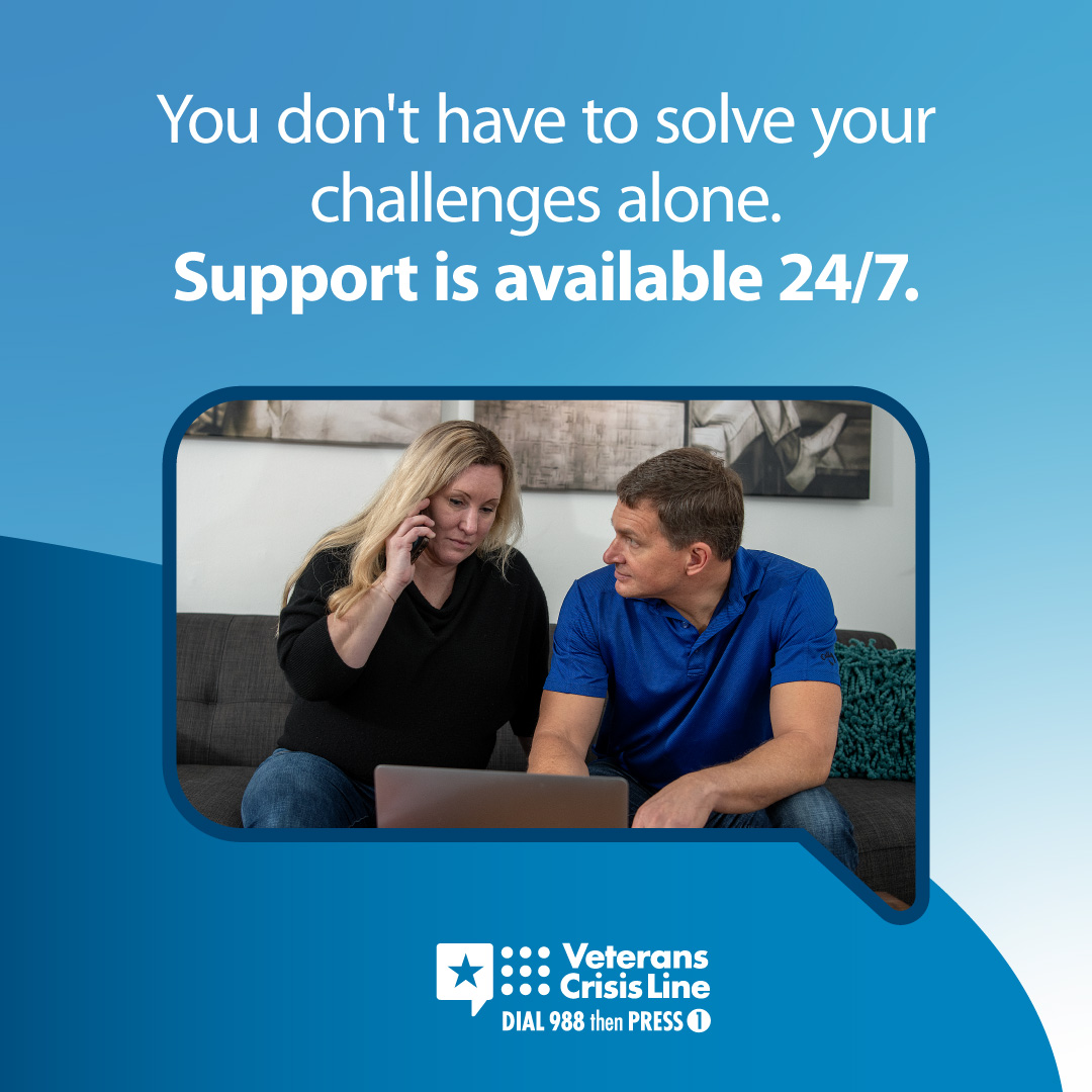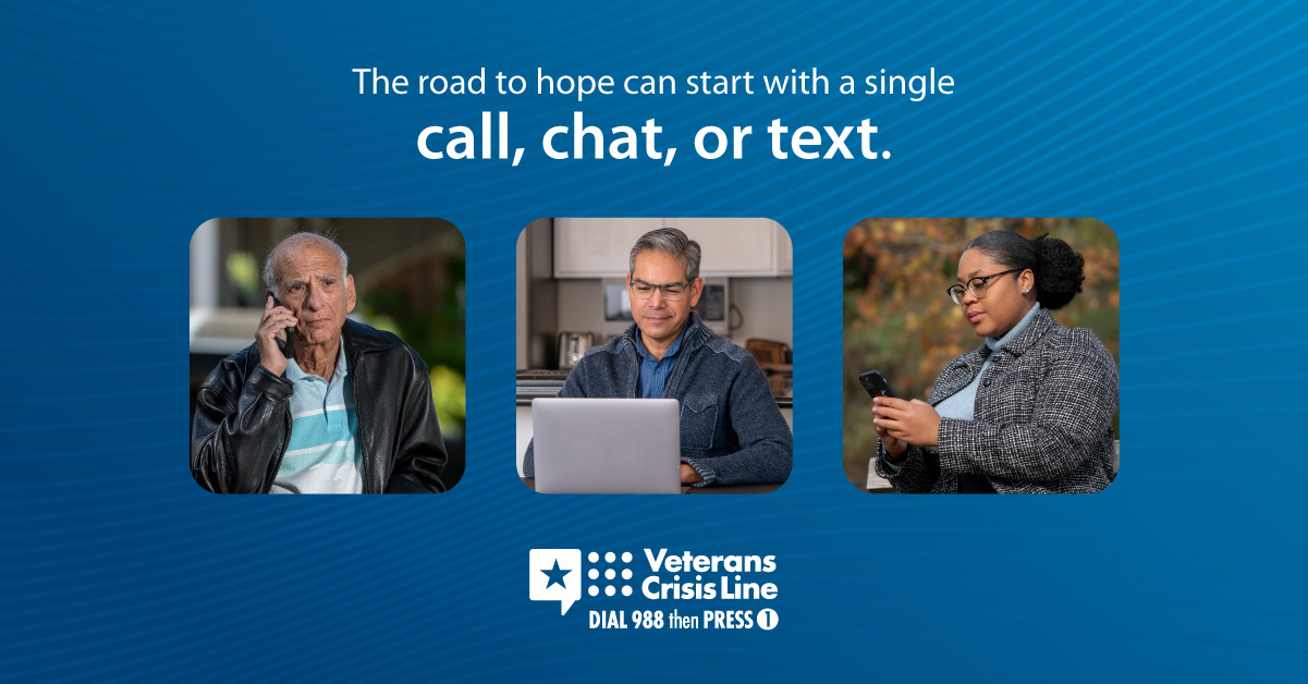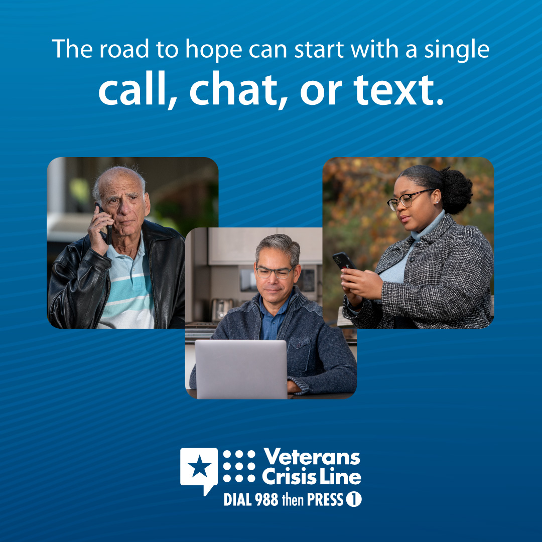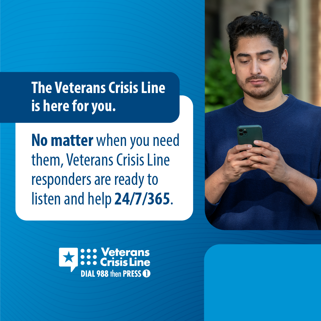 !The Veterans Crisis Line offers support 24/7. If you’re a Veteran in crisis or worried about a Veteran, call, chat, or text now.