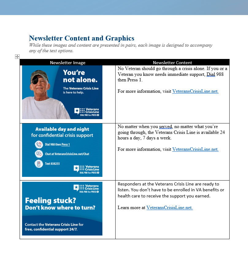 You don’t need to be an expert to make a difference—support Veterans by sharing or using the downloadable resources and information below. This page will be continually updated as new materials become available.